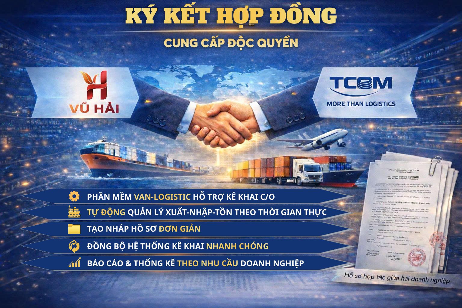 Công ty TCOM chính thức lựa chọn Vũ Hải (VAN-Logistic) là đơn vị độc quyền cung cấp phần mềm hỗ trợ kê khai C/O và quản lý dữ liệu dành riêng cho hệ thống của TCOM