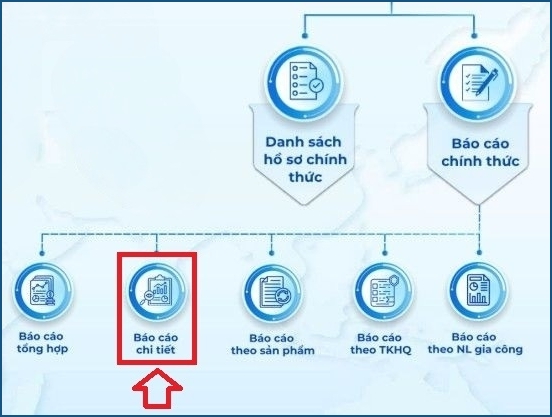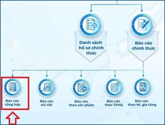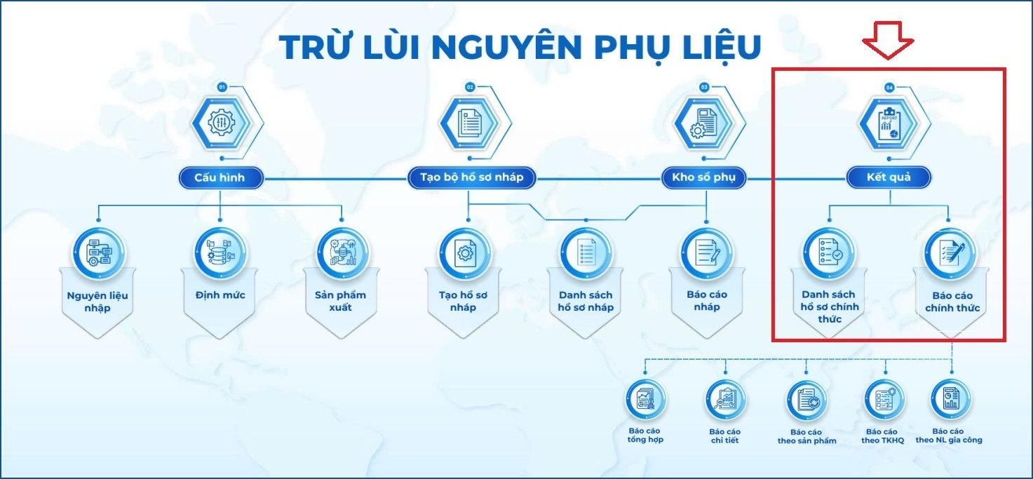 Báo cáo chính thức là kết quả trừ lùi nguyên liệu, sau khi các hồ sơ nháp được chuyển sang hồ sơ chính thức. Tương tự như báo cáo nháp, Báo cáo chính thức cung cấp các loại báo cáo như: Báo cáo tổng hợp, Báo cáo chi tiết, Báo cáo theo Sản phẩm và Báo cáo theo TKHQ.