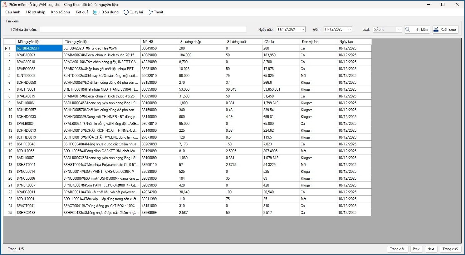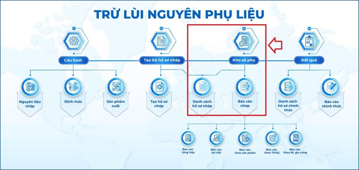 • Hỗ trợ các báo cáo nháp, chi tiết về: Nguyên liệu, Sản phẩm xuất và TKHQ;