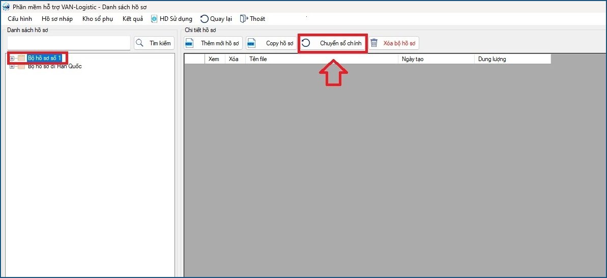 – Trong mục “Danh sách hồ sơ nháp”, DN chọn hồ sơ cần chuyển, sau đó chọn nút chức năng “Chuyển sổ chính”.