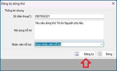 1. Bổ sung tính năng gửi yêu cầu “Đăng ký dùng thử” trên phần mềm: