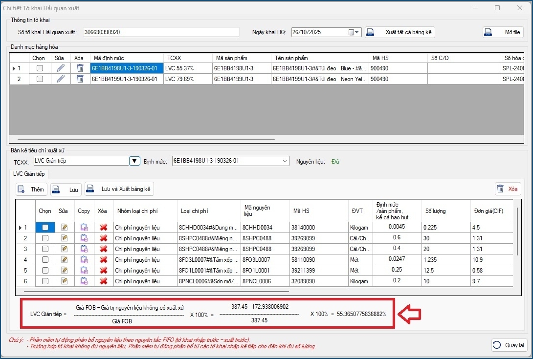 • Phần mềm tự động phân bổ nguyên liệu theo nguyên tắc FIFO (tờ khai nhập trước – xuất trước).