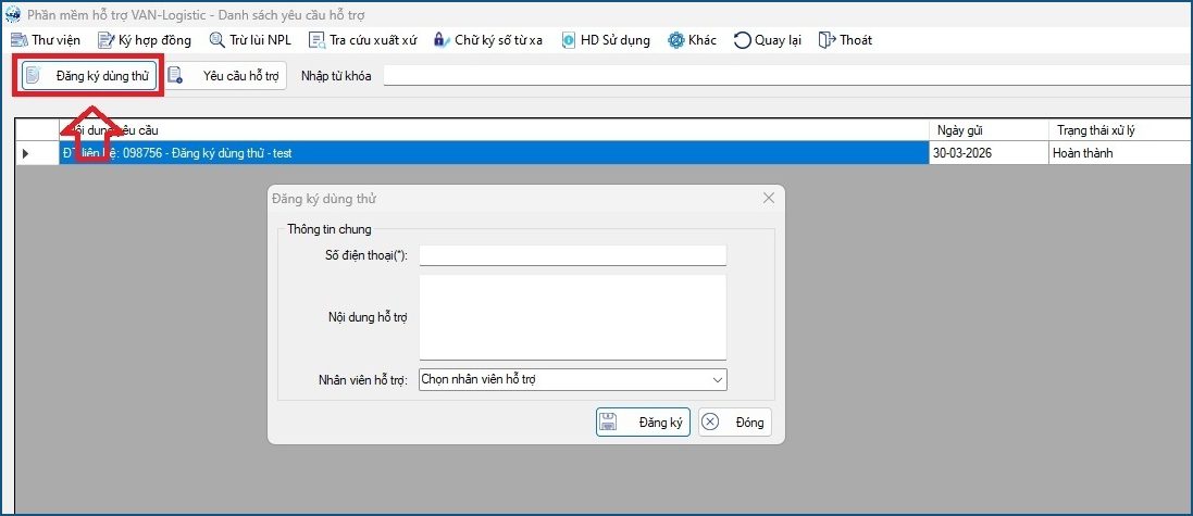 – Sau khi gửi yêu cầu, nhân viên VAN-Logistic sẽ liên hệ hỗ trợ Quý Doanh nghiệp dùng thử dịch vụ.